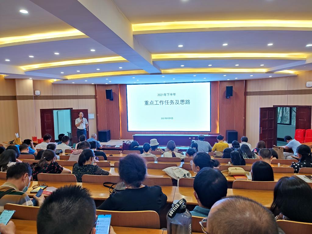 会上,党委书记毛长文领学了习近平总书记在中央民族工作会议上的重要讲话精神,强调要以铸牢中华民族共同体意识为主线,通过宣传教育、实践活动等厚植师生爱党爱国情怀;副院长倪武帆传达了学校学科与科技工作会议精神,并结合具体数据,从项目获批、经费到账等方面对2021年上半年学院科研工作进行了总结,同时对学院下半年科研工作计划安排进行了说明;副院长李正旺结合年度工作任务目标,从课程建设、项目申报、教学案例库建设等方面对学院2021年上半年教学工作进行了汇报;党委副书记黄俊鹏通报了学院招生就业、开学报到、新生入学教育等方面的工作进展与安排情况。