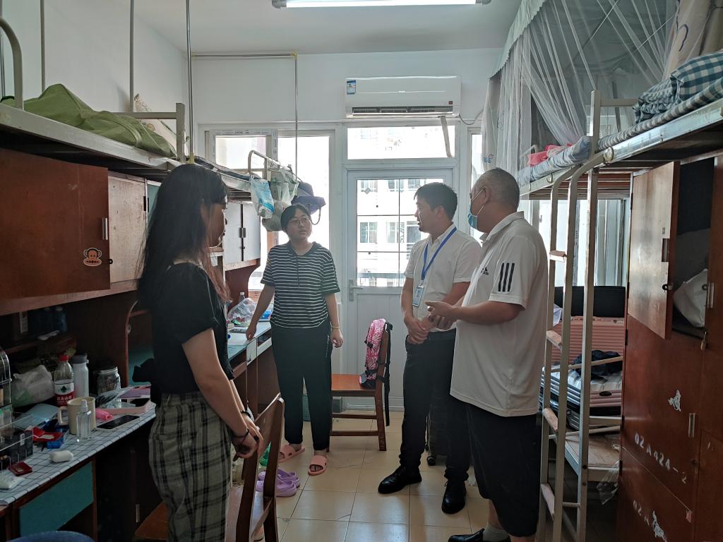 9月18日上午,新生报到日,2026世界杯官网院长段丁强、党委书记毛长文、党委副书记黄俊鹏带领辅导员一行深入新生宿舍、学院迎新点,实地查看新生宿舍环境卫生及生活设施情况,看望了解新生来校感受并与新生谈心谈话。