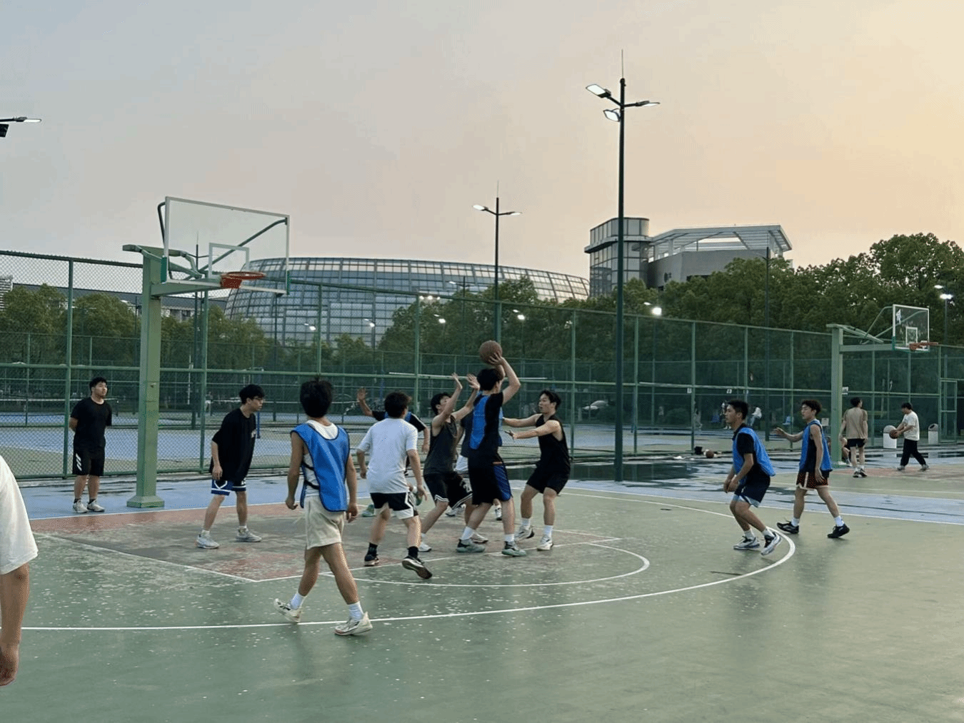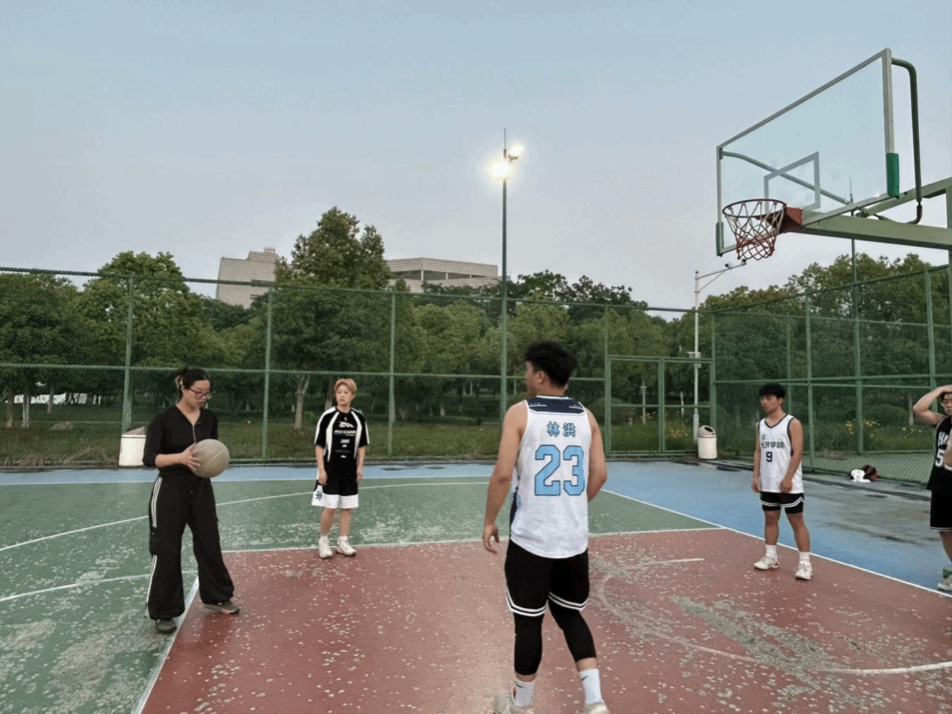 本次比赛以“青春联动·篮聚未来”为主题,吸引了包括研究生、本科生共六支队伍40余人参加,近百人现场围观加油。为增强活动的趣味性和参与面,活动也特别设置了女生组投篮比赛。赛事采用小组循环赛与淘汰赛结合的形式,每日18:30至20:30进行多场对决。尽管春夜微凉,但球员们的热情与观众的呐喊声让球场持续升温。