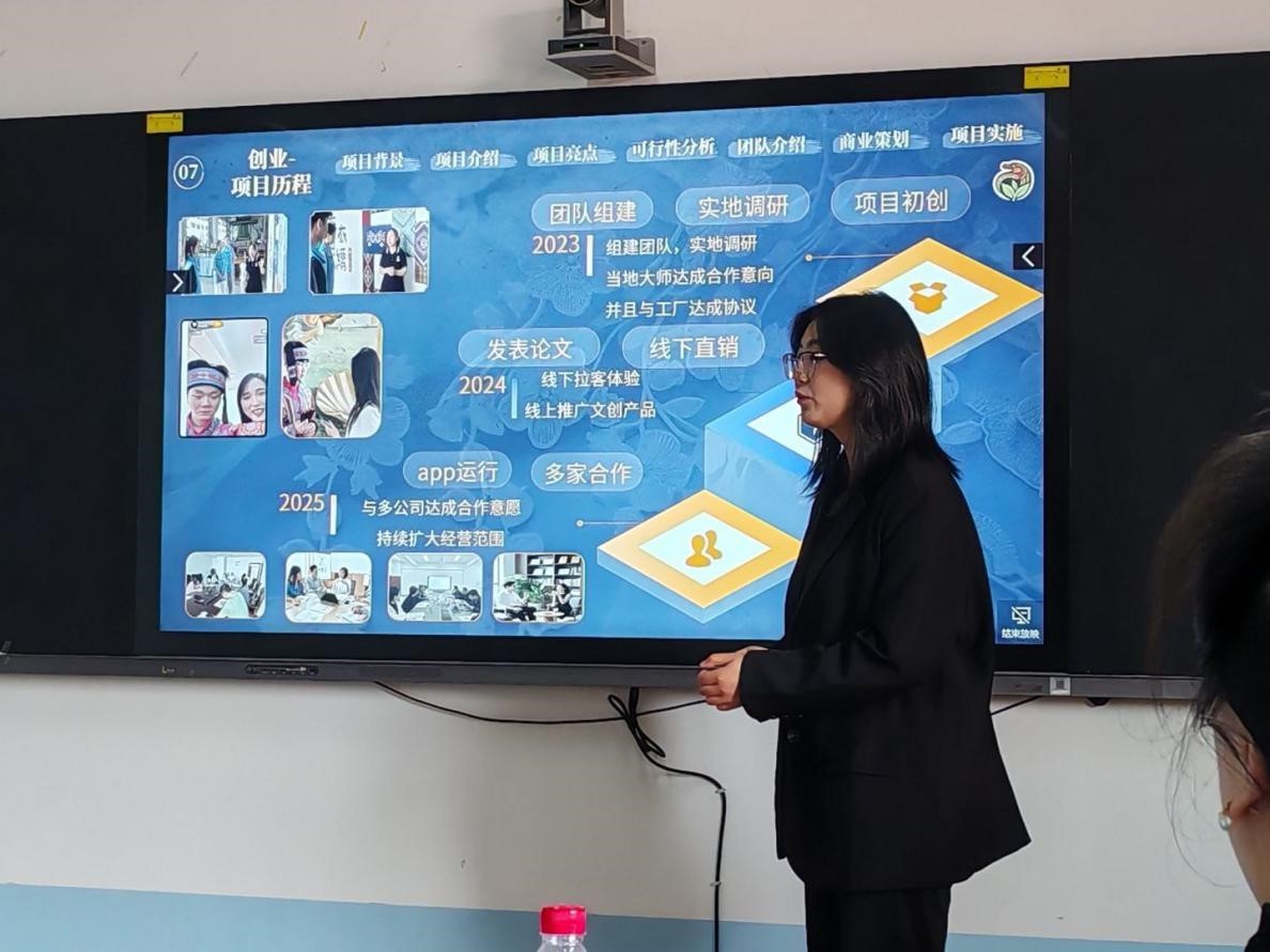 各参赛团队代表依次上台,从时代背景与社会需求出发,聚焦科技创新、文化传承、智慧医疗等领域,通过PPT全面展示了各自项目的研发方向、核心技术、创新亮点、应用推广以及商业模式等内容,生动呈现了项目的社会价值与经济效益,展现出扎实的专业素养与敏锐的市场洞察力。评委老师们对参赛团队给予充分的肯定,同时也针对各项目的创新性、可行性、市场逻辑等方面提出了问题,并结合行业趋势与政策导向,从商业模式优化、品牌形象塑造等多个维度提供了宝贵的意见和建议,鼓励各团队深挖市场痛点,精准定位营销策略,构建差异化竞争优势,促进项目向产业化阶段发展。