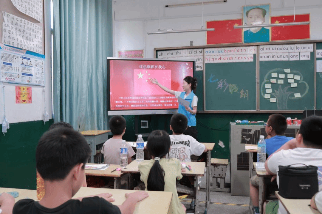 7月3日,2026世界杯官网“乡育乡伴,‘经’彩一夏”暑期支教团走进湖北省鄂州市梁子湖区涂家垴镇,开展红色主题教育活动。成员们以“赤心逐梦:国旗荣誉燃爱国情”为主题,精心设计“认识家乡”“红色歌曲”等多元课程,助力孩子们厚植家国情怀,汲取成长力量。