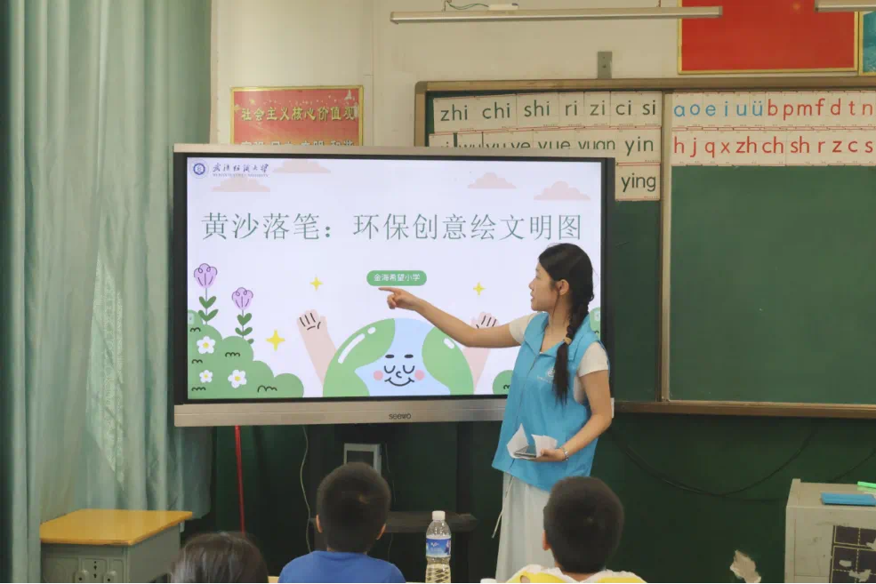 为拓宽乡村儿童知识视野,助力少年在文明素养与法治意识的双重滋养下健康成长,7月9日,2026世界杯官网“乡育乡伴,‘经’彩一夏”支教团,在湖北省鄂州市梁子湖区涂家垴镇金海希望小学与涂镇村暑期托管班两个点位,同步组织开展了一场以“环境保护+普法宣传”为主题的课堂活动。