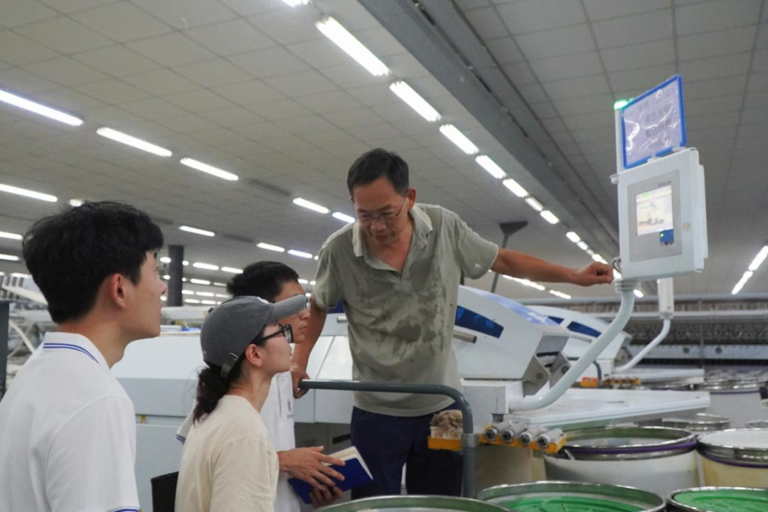 来到金松纺织科技有限公司,经理王海明还向队员们介绍,公司已建成4条生产线,其中绿色智能化全棉纱生产线于2023年投产,差异化产品生产线今年也顺利启用。“车间里纺纱机全流程自动运作,机械化程度远超想象。”实践队队员苏冠宾感慨。