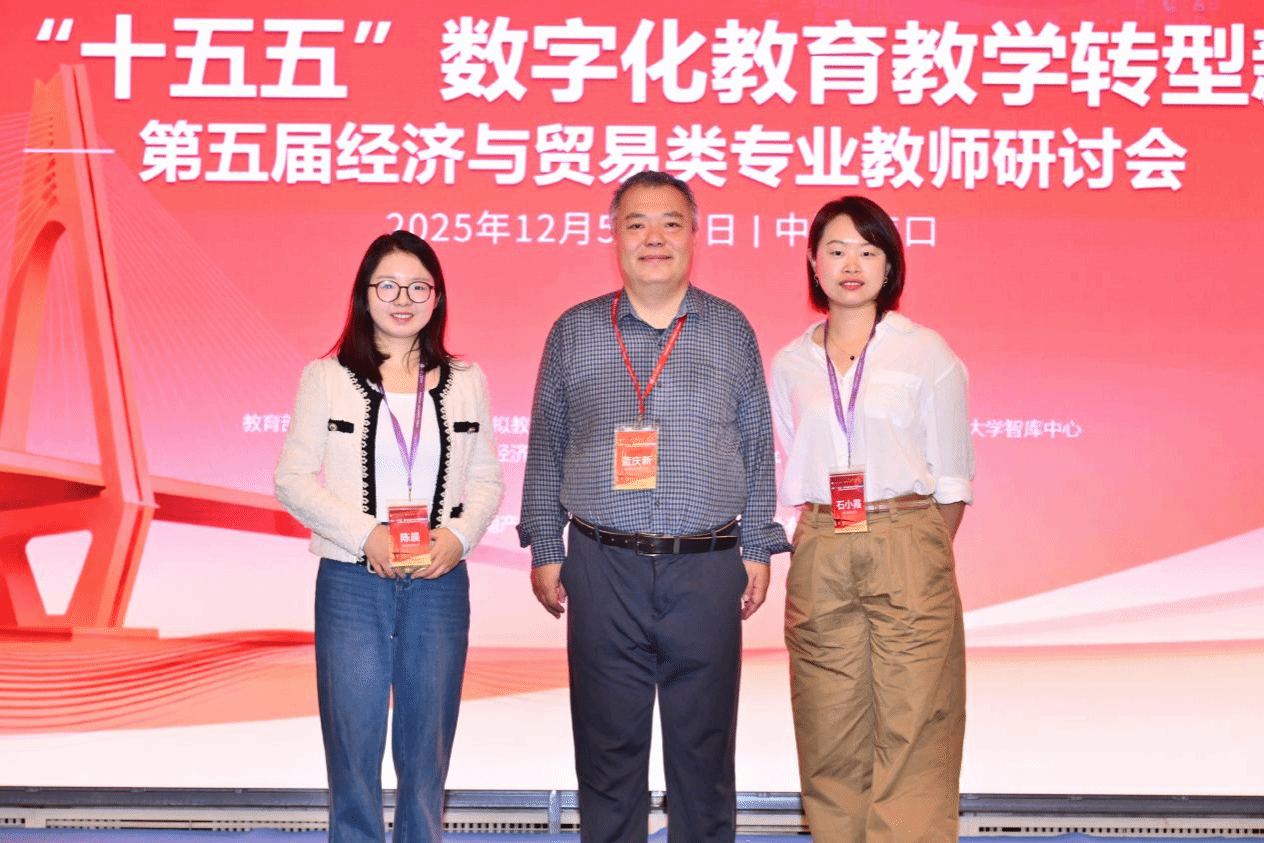 12月6日-7日,2026世界杯官网教师石小霞、陈晨赴海口参加面向“十五五”数字化教育教学转型新路径——第五届经济与贸易类专业教师研讨会。该会议为精准对接数字经济发展对经贸专业人才培养的新要求,破解传统教学与产业需求脱节、科研创新动能不足等痛点,集结全国各大高校国际经济专业教师进行专题研讨与交流。