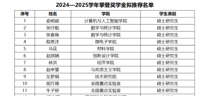 据了解,攀登奖学金是由校党委书记徐卫林院士发起设立,旨在不断激励学生不畏艰难、敢于攀登,勤奋学习、锐意进取,不断超越自我,不断追求卓越,勇于开创属于自己的美好前程。今年研究生攀登奖学金评选,是由全校各研究生培养单位推荐2名左右学生作为候选人参评,最终由学校组织复审推选产生十名左右攀登奖学金获得者。