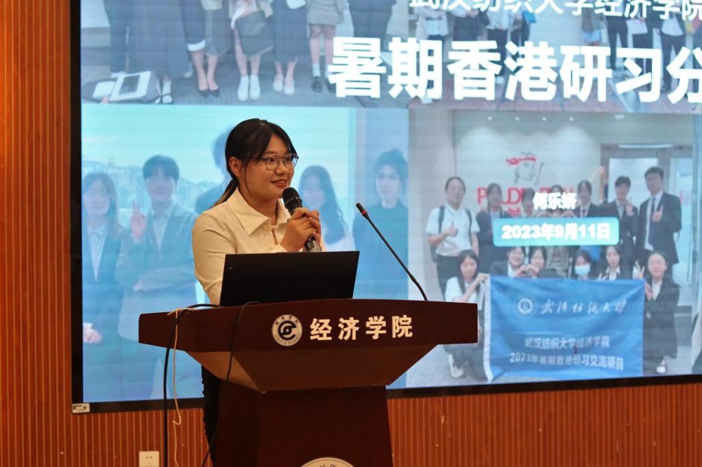 段丁强对CFA班新生致辞,他围绕三个关键词:愿景、感恩、期待,表达了对新生的祝福,包含着浓浓的期许。2023年暑假,学院CFA专业部分学子远赴香港,进入世界五百强企业进行为期七天的金融实习研学,从前期准备到自身的心得体会,21级CFA专业的何乐妍将这七天的研学之旅娓娓道来。她表示,暑假研习不仅提升了她的专业知识与能力,更是人生一次宝贵的经验。