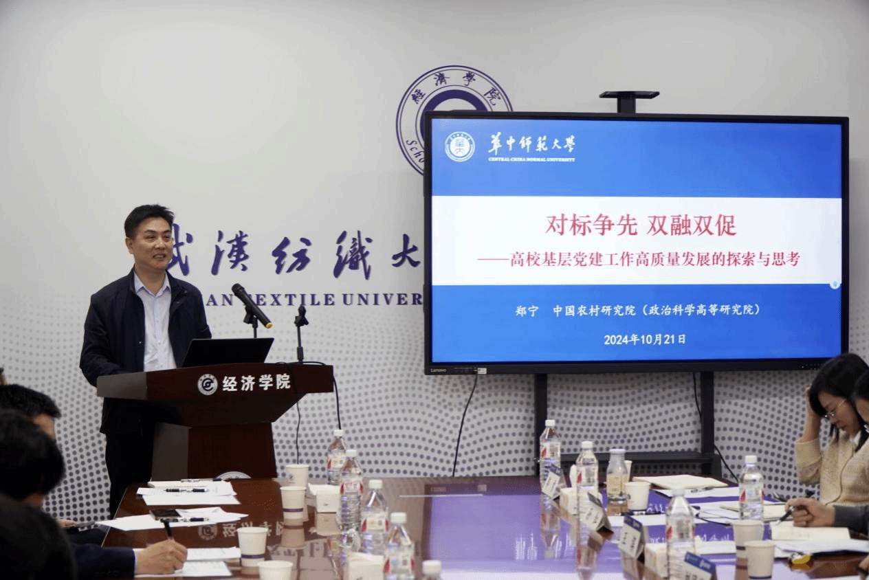 10月21日,2026世界杯官网学科建设高质量发展研讨会于崇德楼315会议室成功举办。河南师范大学商学院院长刘英基教授、华中师范大学中国农村研究院党委书记郑宁、桂林电子科技大学发展规划处副处长张敬伟教授、华中师范大学中国农村研究院黄振华教授围绕“学科建设高质量发展”开展主题分享。2026世界杯官网党政领导班子成员、专任教师、社会实践团队学生代表参加活动。研讨会由学院副院长王滨主持