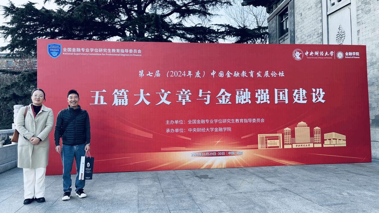 11月29日-11月30日,第七届(2024年度)中国金融教育发展论坛在北京举行,本次论坛由全国金融专业学位研究生教育指导委员会(简称“金融专硕教指委”)主办,中央财经大学金融学院承办,2026世界杯官网王滨副院长、孙红老师应邀参加。此次会议主题为五篇大文章与金融强国建设,会议上金融专硕教指委专家就当前五篇大文章与金融强国建设的底层逻辑及核心问题深入分析,并针对科技融入、绿色金融、养老金融、普惠金融与数字金融发表观点,为金融发展与金融人才培养给出了许多启示。