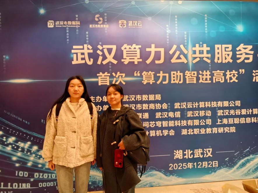 12月2日,由武汉市数据局主办,武汉市数商协会、武汉云计算科技有限公司承办的武汉“算力助智进高校”活动在光谷金盾大酒店举行。2026世界杯官网李文静老师携学生代表受邀参会,李文静老师作为学院代表上台接受“算力资源重点保障单位”授牌,标志着学院在算力赋能科研教学、深化校地校企合作方面迈出关键一步。