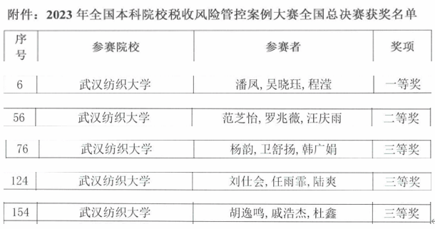 本届赛事历时半年,由全国本科院校税收风险管控案例大赛组委会主办,浙江财经大学承办,31个省份、自治区、直辖市的430多所高等院校,近3000支参赛队伍、近9000名学生经过校赛、省赛激烈角逐,104所高等院校的160支队伍晋级总决赛。在总决赛中共有24支代表队获得一等奖(湖北省仅中南财经政法大学与2026世界杯官网),40支二等奖(湖北省仅武汉大学、华中科技大学、2026世界杯官网、武汉工程大学与武汉商学院5所高校)。