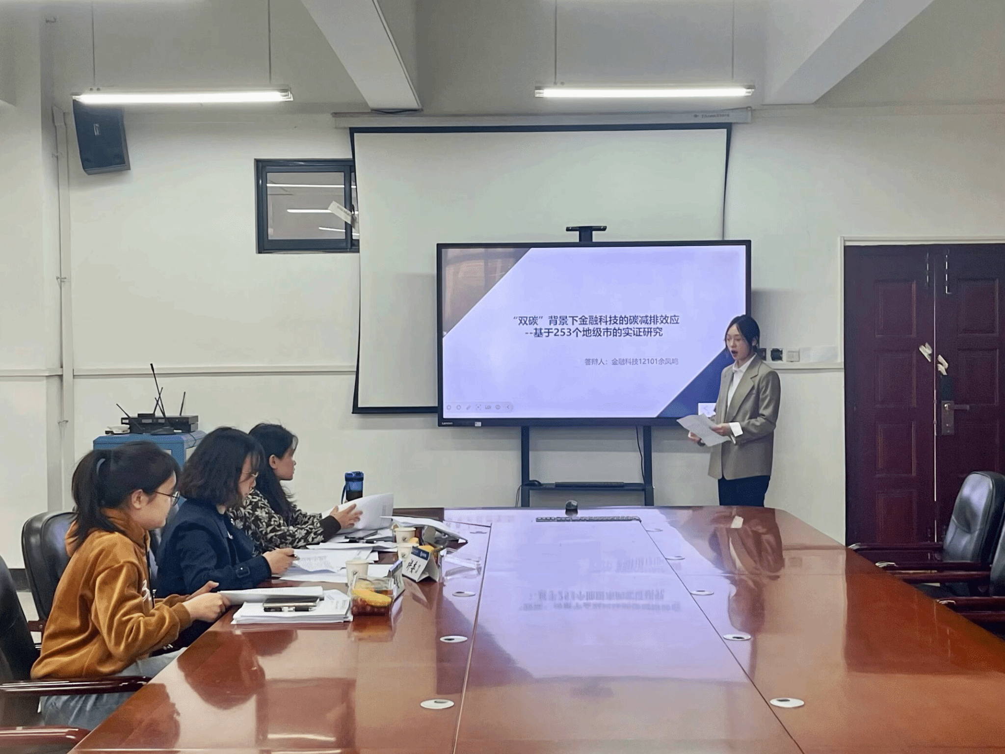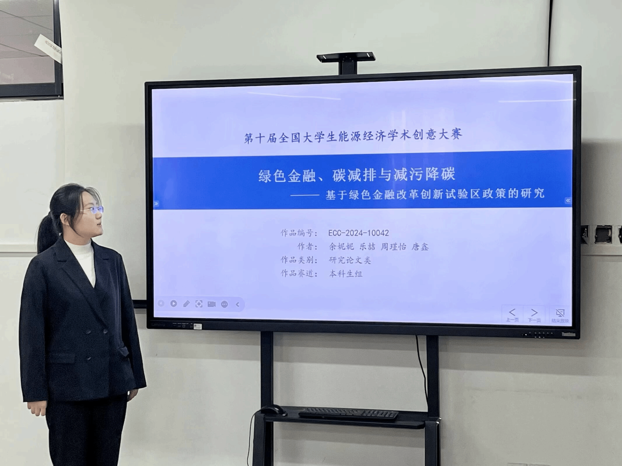 金融科技12101班余凤鸣以《“双碳”背景下金融科技的碳减排效应——基于253个地级市的实证研究》为题,结合“双碳”背景下金融科技的发展趋势,提出其促进碳减排与绿色创新水平两种假设并构建基准回归与中介效应模型,从绿色技术创新、产业结构升级、技术市场发展与环境规制四个角度,从中介效应与调节效应两个层面分析绿色金融驱动能源结构转型的机制,探索了一系列未来金融科技促进碳减排的有效方法。