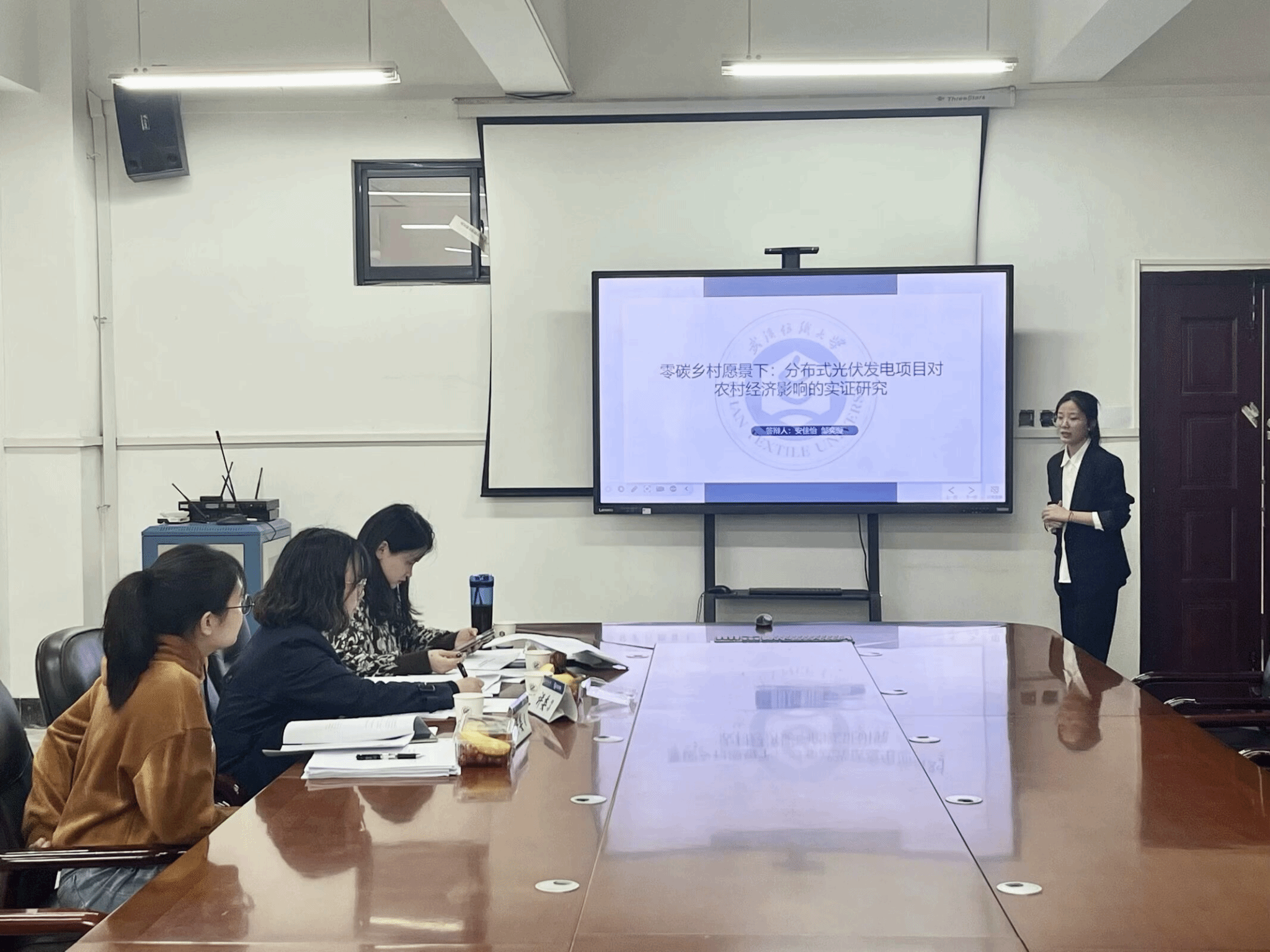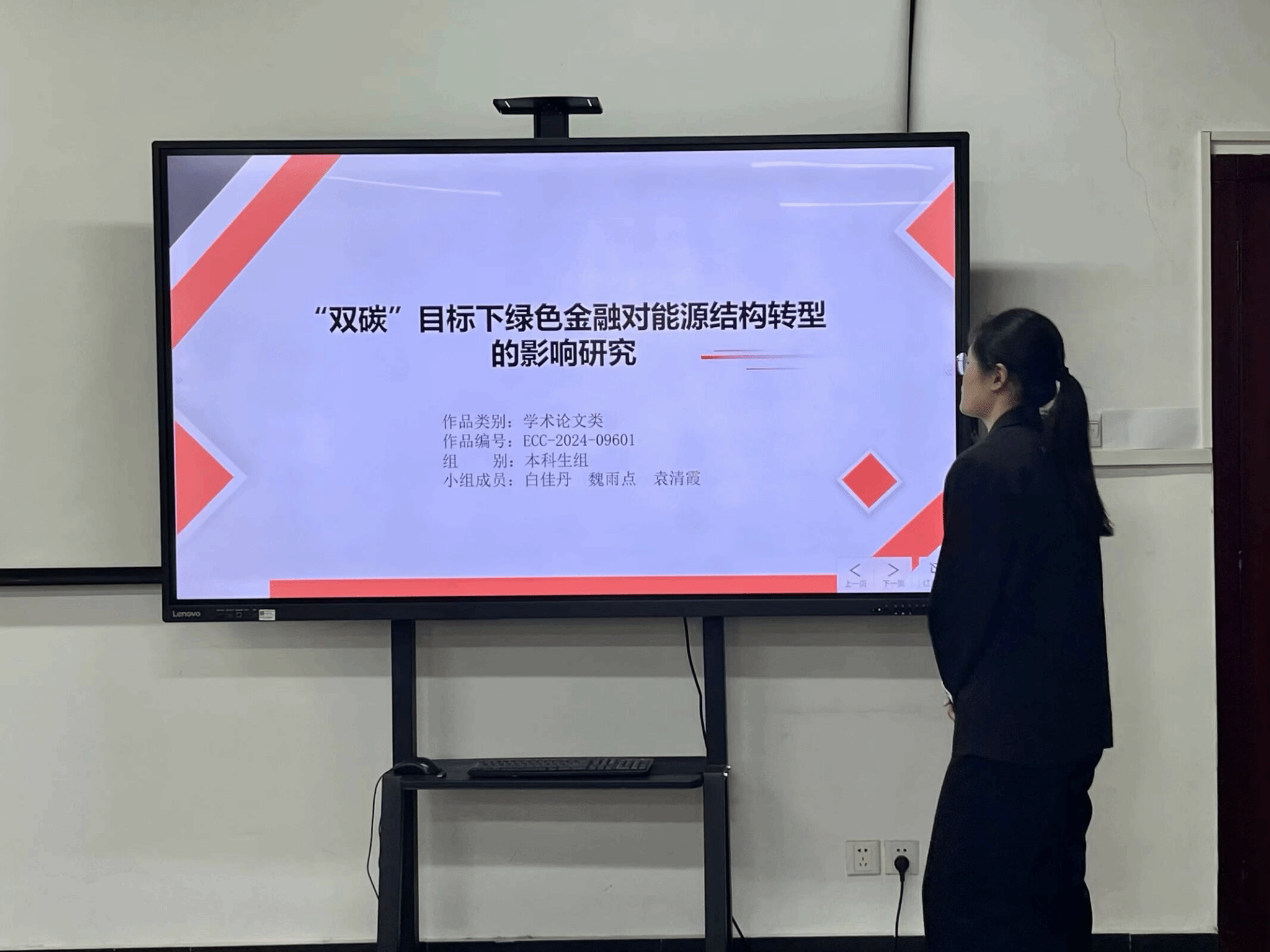 金融科技12201班安佳怡以《零碳乡村愿景下:分布式光伏发电项目对农村经济影响的实证研究》为题,结合国内绿色低碳发展背景,分析分布式光伏发展现状,采用多期DID从农户人均收入、地区生产总值、产业结构优化等角度进行实证分析,证明分布式光伏发电促进农村经济发展,总结出健全农村光伏产业链进而推动可持续发展的宝贵经验。