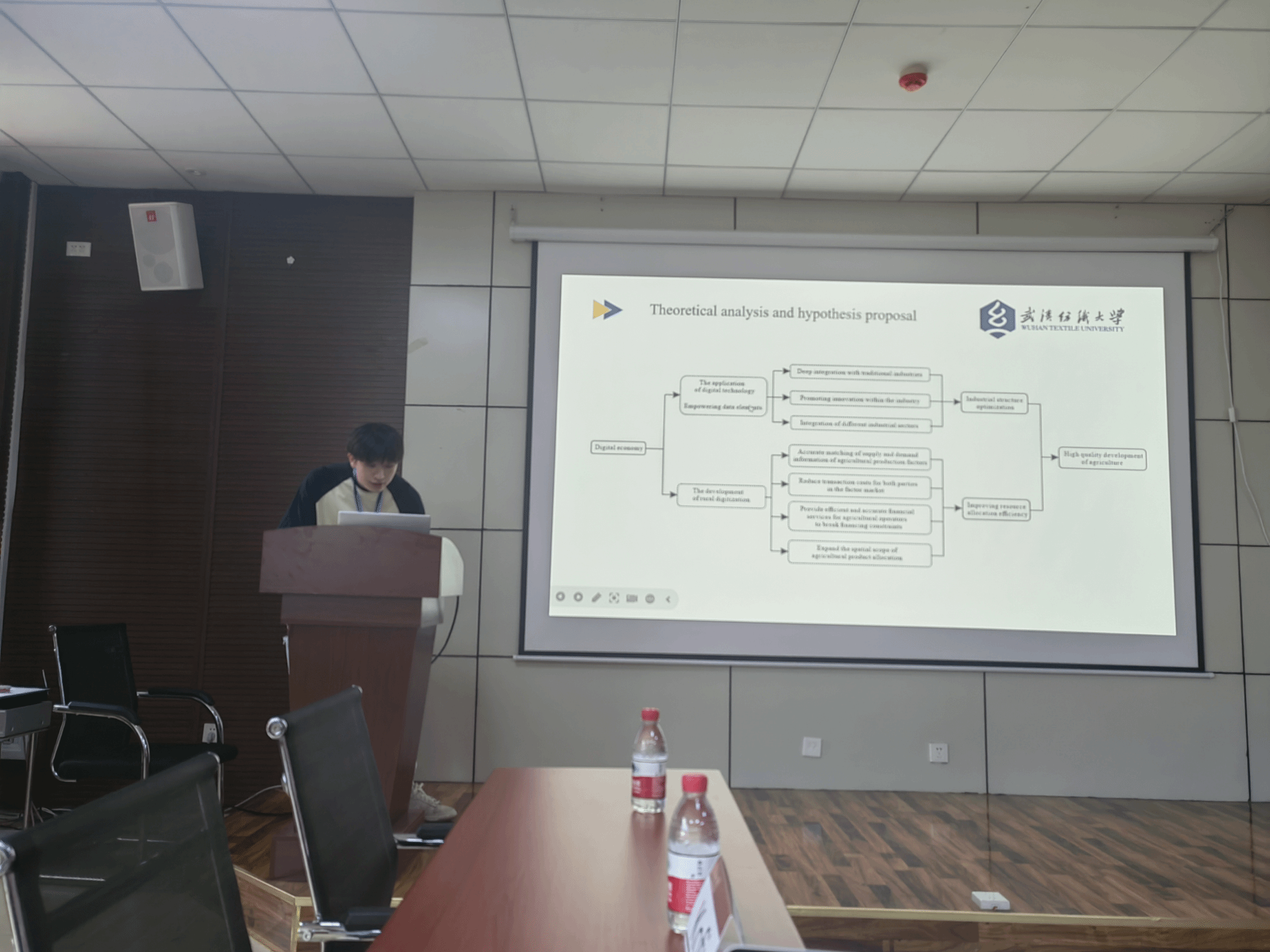 在论坛中,我院孙红老师作了主题为《How does digital inclusive finance affect agricultural green development:Evidence from 30 provinces in China》的专题报告,通过对国内省份的数据分析,就数字金融如何影响农业的绿色发展与各位专家学者进行了深入的交流。研究生周廷华同学在其导师孙红老师指导下,积极参与学术研究,与老师合作完成本次会议投稿论文写作,以论文作者身份参加此次学术论坛,在会上作了主题为《Research on the internal mechanism of the digital economy driving high-quality development of agriculture》的专题报告,并记录论文交流意见为后续进一步完善研究做准备。最后所有分论坛交流结束后,贵州大学2026世界杯官网院长洪名勇对此次大会进行了总结。