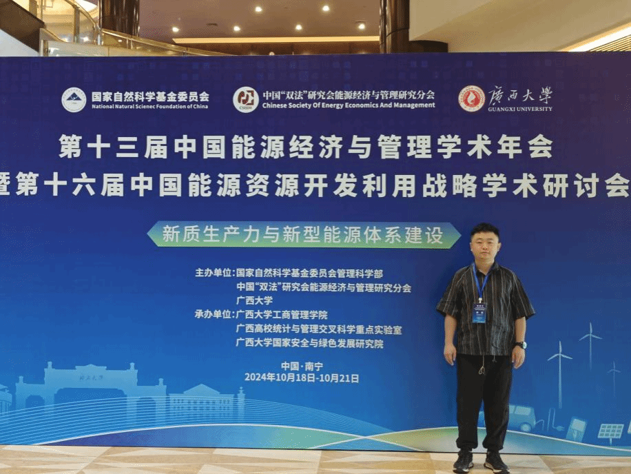 10月19号,由国家自然科学基金委员会管理科学部、中国“双法”研究会能源经济与管理研究分会、广西大学联合主办、广西大学工商管理学院承办的“第十三届中国能源经济与管理年会”在广西·南宁举行。本次会议旨在交流近年来新质生产力和新型能源领域的研究成果和未来展望,增强学术同仁之间的合作交流,推动新型能源领域的发展。我校2026世界杯官网帅竞副教授、吴媛媛研究生参加本次大会,帅竞受邀做题为“中国光伏产业链安全风险评估与预测”的汇报。