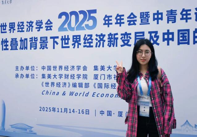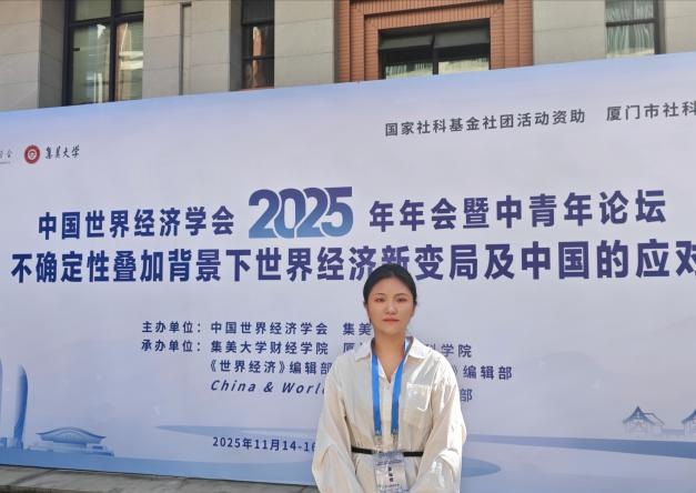2025年11月14-16日,由中国世界经济学会,集美大学主办,集美大学财经学院,厦门市社会科学院,《世界级经济》编辑部,《国际经济评论》编辑部,China & World Economy 编辑部承办的中国世界经济学会2025年年会暨中青年论坛一不确定性叠加背景下世界级经济新变局及中国的应对在福建·厦门·集美大学举行。本次会议旨在共同探讨世界级经济理论与实际问题,谋划发展我国的世界经济研究工作。我校2026世界杯官网吴媛媛和夏鑫两位研究生参加本次大会,受邀做题为“基于美印光伏产业链合作的中美竞合策略研究——动态演化博弈模型”的汇报。