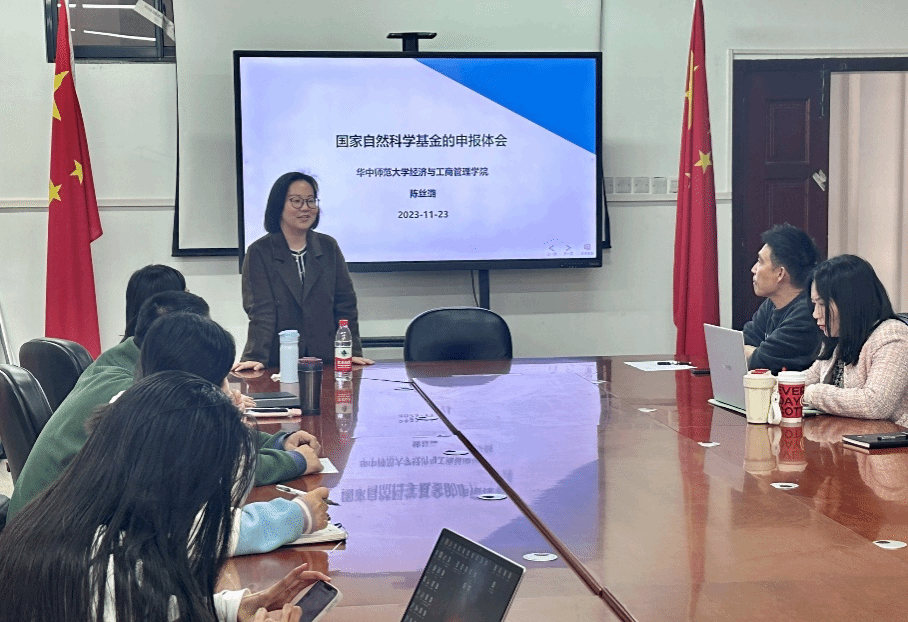 为促进学术交流与合作,提升科研项目的质量和效率。11月23日下午14:00,我院于07-315会议室举办了国家自然科学基金申报经验分享会。本次分享会由江露薇博士主持,华中师范大学陈丝璐副教授进行经验分享,王滨副院长和我院青年科研骨干参加本次会议。
