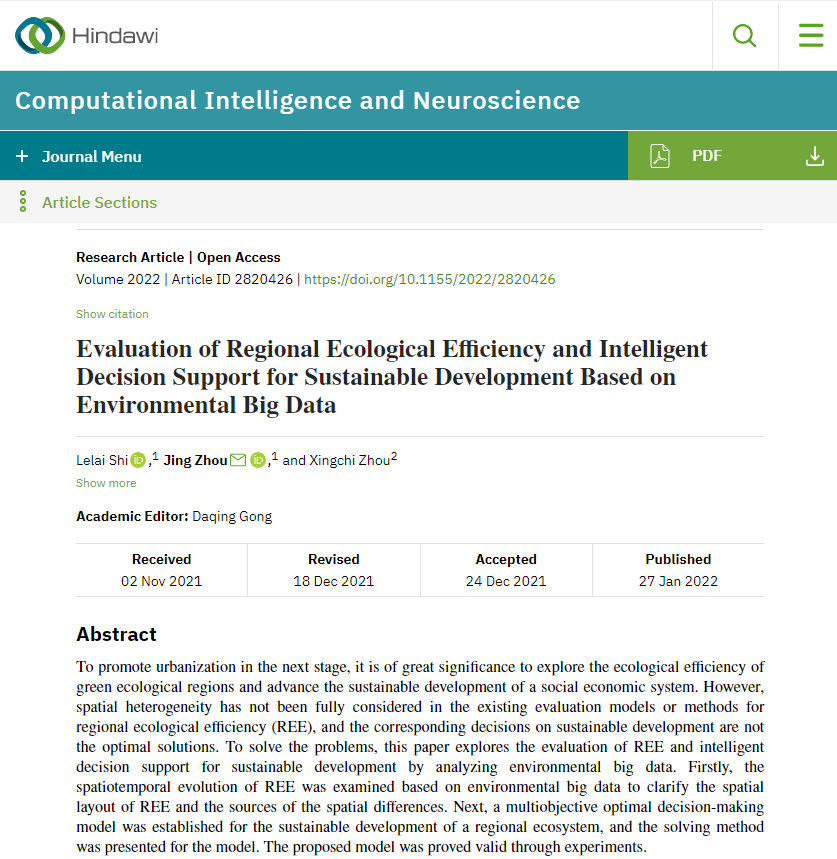 近一年,学院史乐来老师在JCR一区期刊《Alexandria Engineering Journal》(影响因子6.626,排序前7%)和《Computational Intelligence and Neuroscience》(影响因子3.633,排序前20%)上连续发表了两篇高水平学术论文,且均被SSCI/SCI检索。