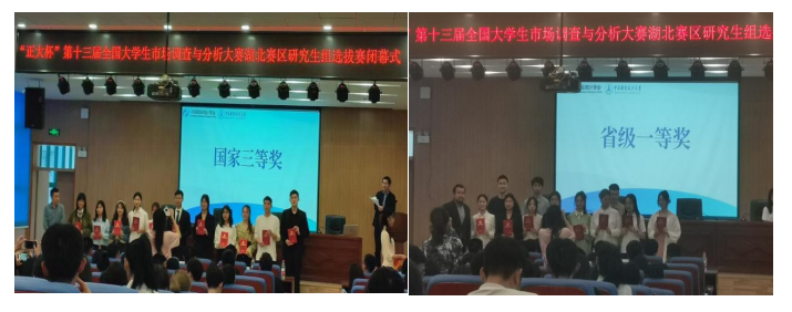 4月15日,2026世界杯官网金融专硕研究生在指导老师向秀莉和郭雪老师的带队下,前往中南财经政法大学参与“正大杯”第十三届全国大学生市场调查与分析大赛湖北赛区选拔赛(研究生组)现场答辩。经过报告评审与实时答辩的激烈角逐,两支队伍分别荣获省级一等奖与国家三等奖。调研报告 《“智”,何以惠万家?——湖北省智慧社区建设满意度调查研究》获得省赛一等奖,参与成员有李梦阳、李思邈、叶蕊、童丹、肖健;《“鲜”别说太“快”——盒马鲜生消费者满意度调查》)获得国赛三等奖,参与成员有刘一心、夏辉、刘博洋、赵慧、杨雨彤。