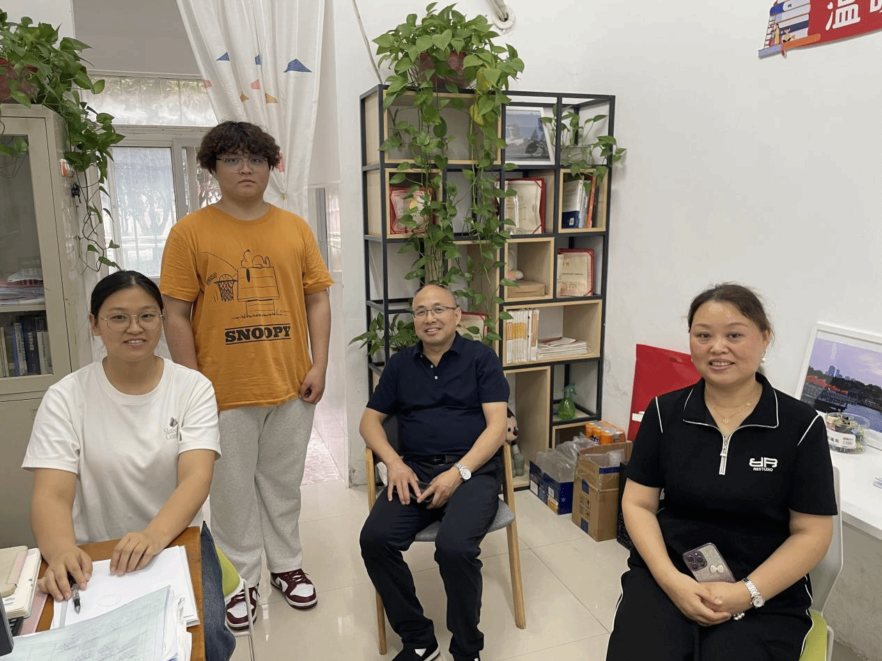 7月9日,马晓雪对留校备战考研的小刘同学及其专程从外地赶来探望的家长开展家访。马晓雪详细介绍了小刘在校期间的学习状态、参与学科竞赛及志愿服务等情况,对其表现给予高度赞扬。小刘家长则倾诉了对孩子备考压力的担忧,并感谢学校为留校学生提供的考研专用教室等保障措施。