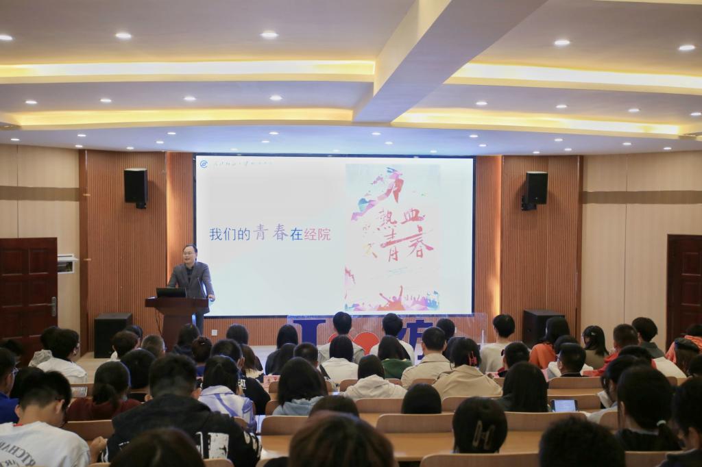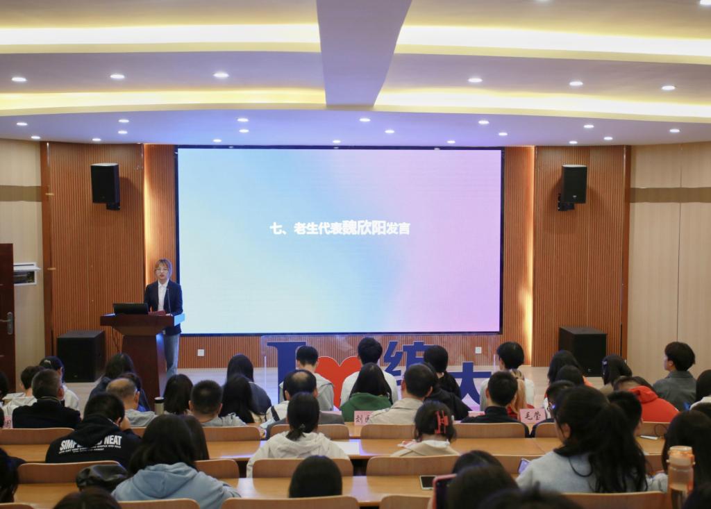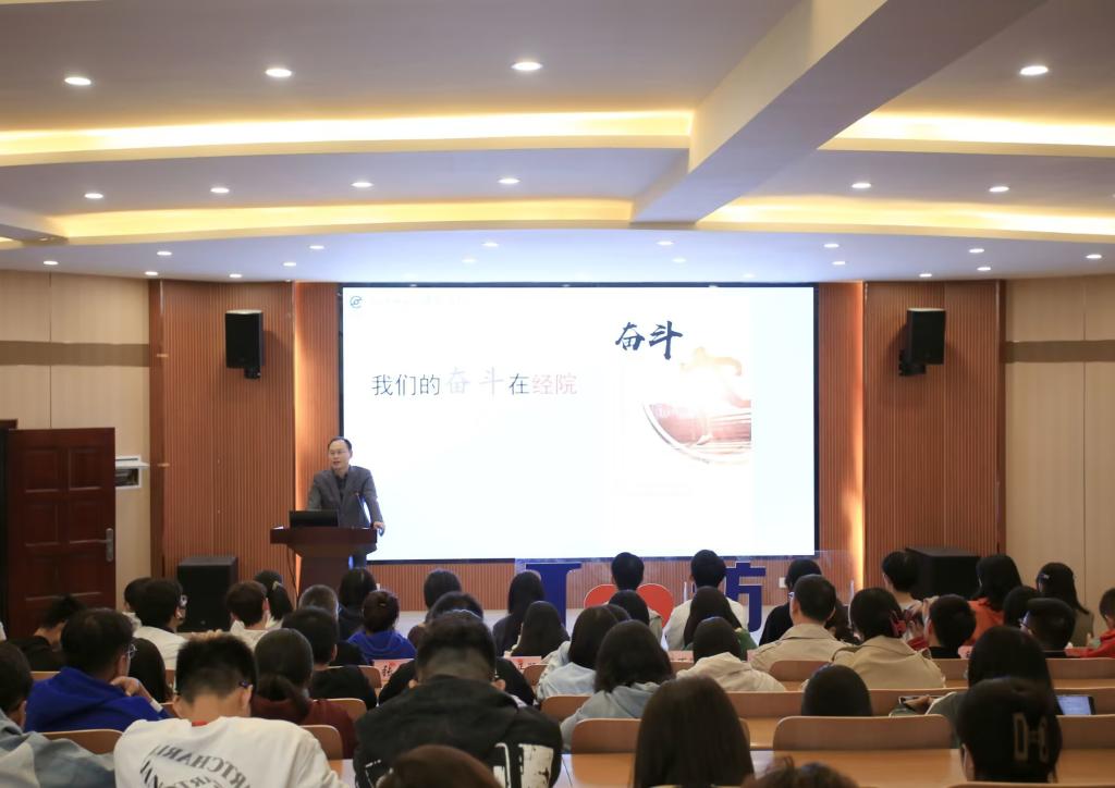 对于大学中的科研创新活动,王滨作出了相应解释,他鼓励学生们在知识获得方面从被动变为主动,并表示学院所具备优良师资队伍和丰富实践平台都是帮助学生进行科研创新的坚强力量。会上,新老生代表依次发言,新生李赛格表示,进入经院是人生的一个新起点,在这个新起点上,她感受到了来自学院师生的温暖,也更坚定了攀登前进的信念。老生魏欣阳则用自己的经历勉励在座的学子们勇敢接过接力棒,续写经院崭新的篇章。
