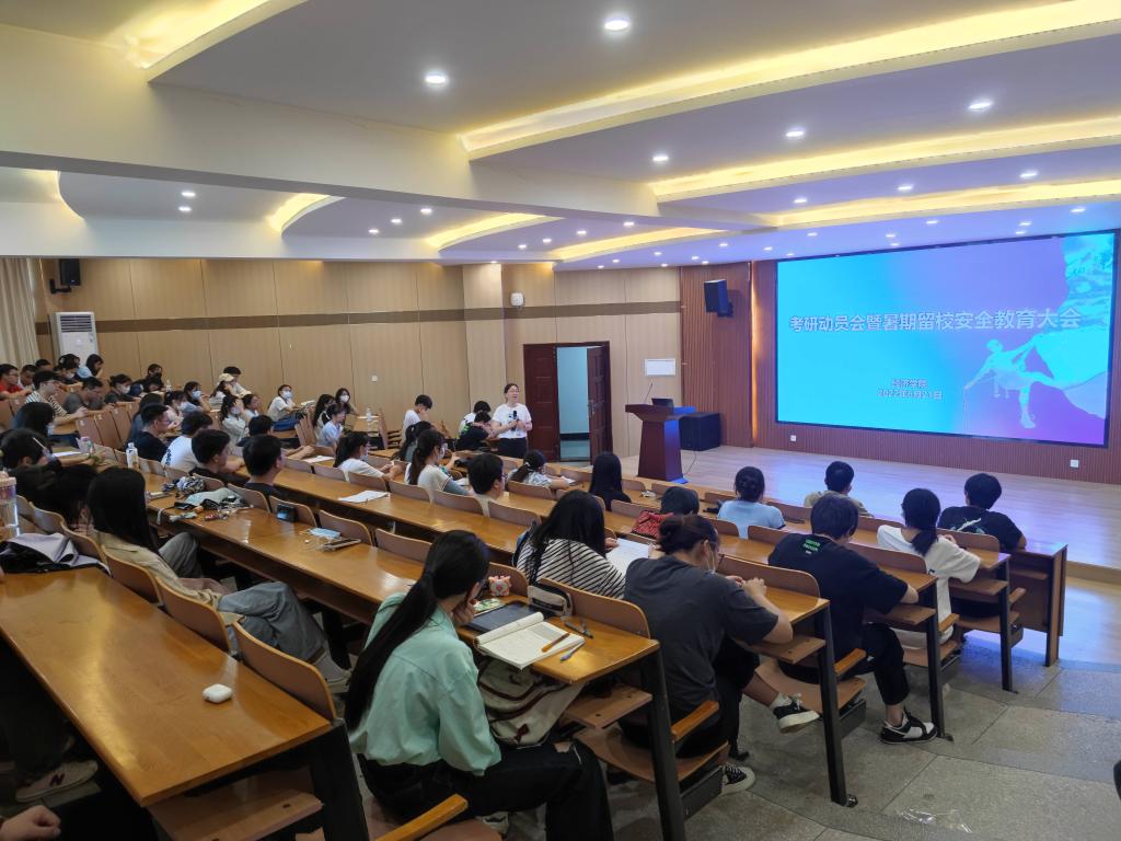 党委副书记李静宇就暑期留校学生安全教育提出要求和期望:一要明确暑期留校的目的意义,珍惜暑期考研学习的黄金期,勤奋学习,制定合理的学习计划,争取一战成硕;二要明确身份意识,严格遵守学校暑期留校学生的管理和教育相关规定,服从学校的统一安排,非必要不请假,非请假不外出;三要做好个人的人身财产安全、饮食安全,同时要注意交通、防溺水等,严禁学生违章用电,不断提升安全防范意识和自我保护能力。最后,李靖宇希望考研学子恒心、有毅力,并预祝同学们在考研这场马拉松跑出好成绩。
