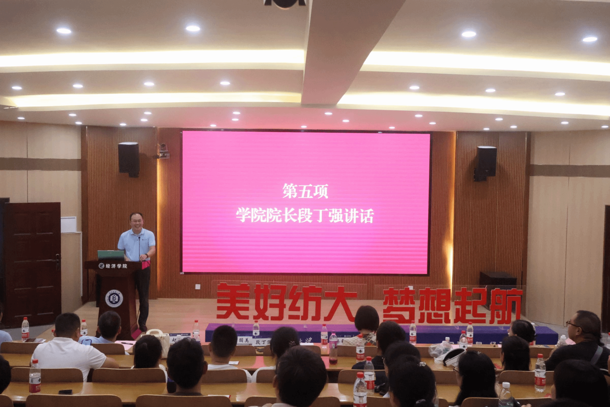 “如何扣好人生的第一颗扣子?”为回答这一时代命题,段丁强强调,同学们要在新的生活和学习中认识自我,把握崭新的自我定位,在人生不同的赛道上争取跑出自己的最好成绩,在立志立行中不断锤炼本领、提升能力,在求学过程中拼搏奋斗、不留遗憾。他表示“不能因为换了一个较为轻松的大学环境,就迷失自我,要坚明确目标,做好规划,让青春不留遗憾。”