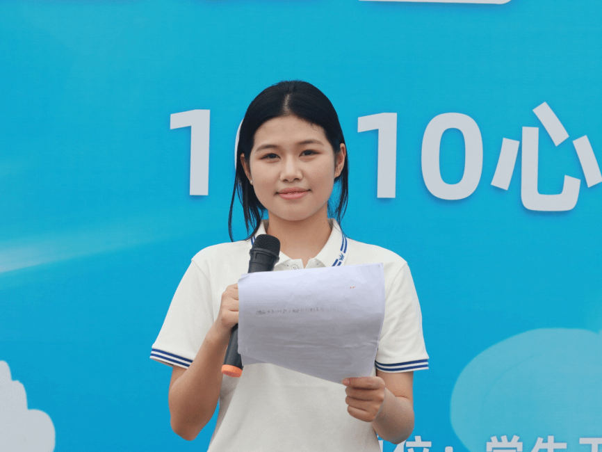 心理委员、学生代表阮德慧子宣读《心理健康倡议书》,呼吁全校学生共同关注心理健康,携手“以心相会”,朝着“青春向阳”的目标前进,共同开创美好的未来。