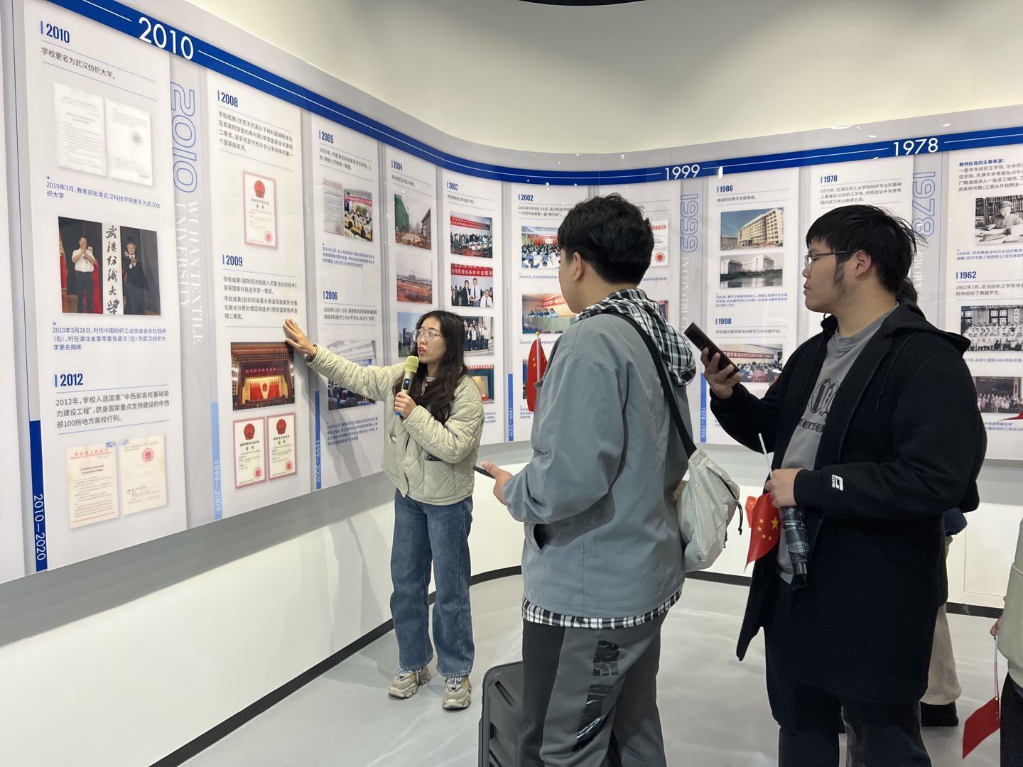 在“纺织缘”中,学生详细了解了纺大校史大事纪、校友风采、领导关怀,近距离感受“自强不息、经天纬地”的纺大精神;“传统纺织”通过丰富的史料,展示纺织工业在人类社会发展进程中做出的重要贡献;“未来纺织”赋予学生充分的想象空间,勾勒未来纺织技术应用的蓝图。