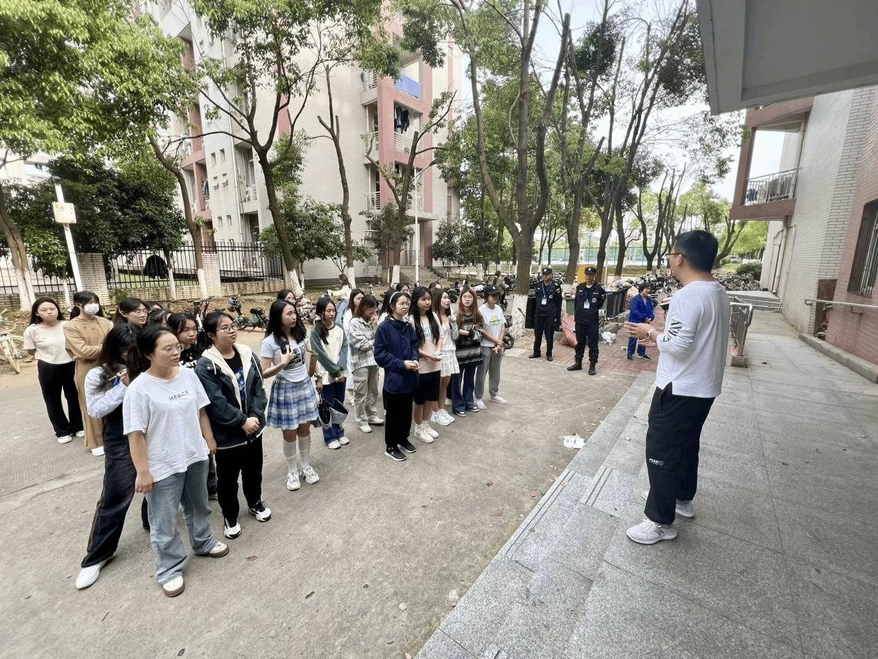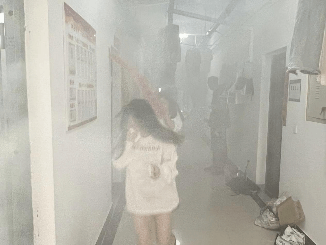 消防安全疏散演练在阳光校区12栋“红色先锋”学生服务驿站进行。同学们十人一队,在听到火灾警报后迅速响应,用湿毛巾捂住口鼻,弯腰俯身,从宿舍消防通道迅速撤离至一楼。面对突发险情,各寝室长、信息员真情切实地感受到了掌握火灾逃生技巧的重要性。学院老师与保卫处刘诚老师先后结合现场实际情况,就如何在灾情发生时迅速响应、如何报火警、如何正确逃生作出补充强调,并提醒学生们注意安全用电、营造安全的寝室环境。