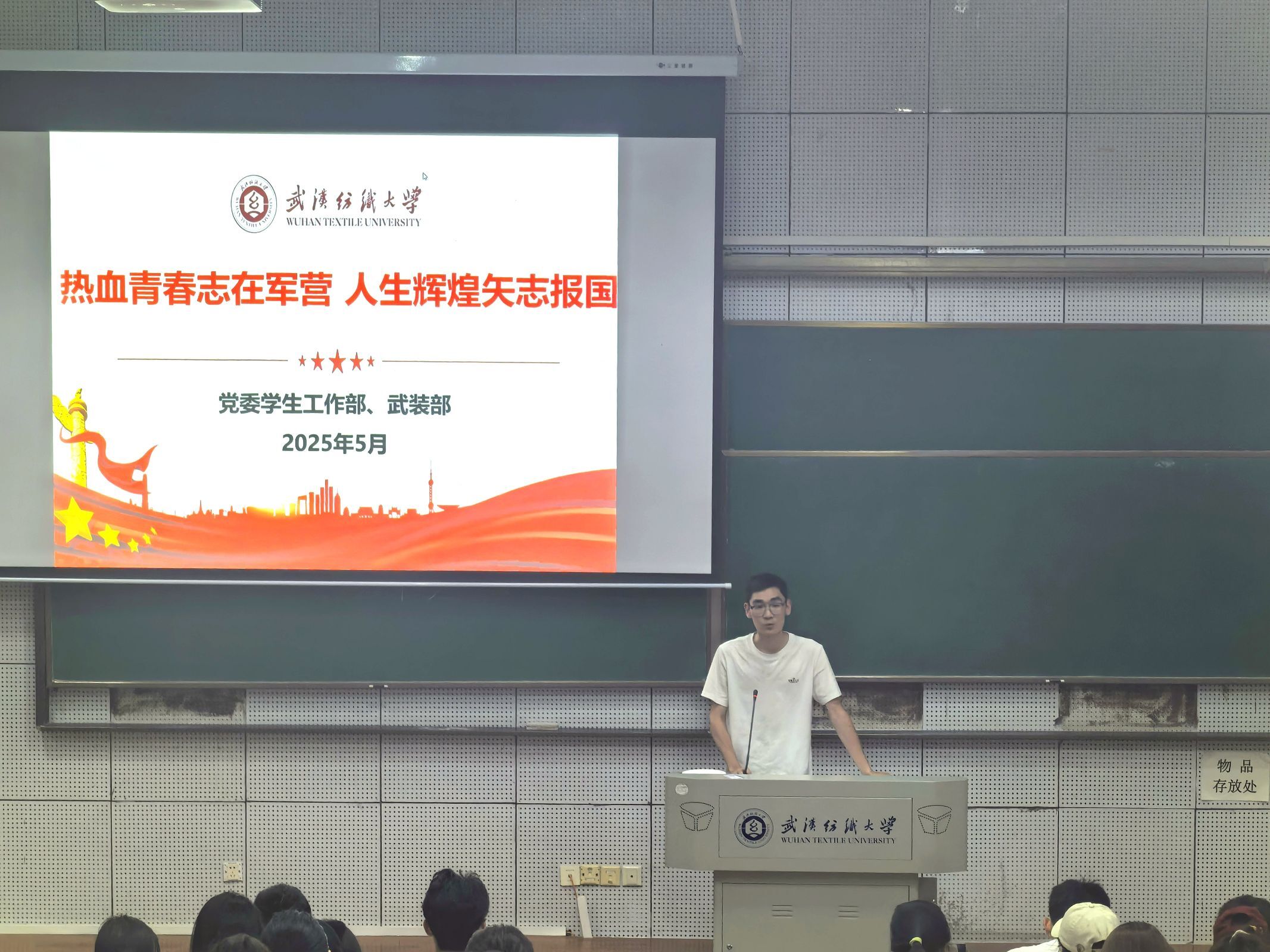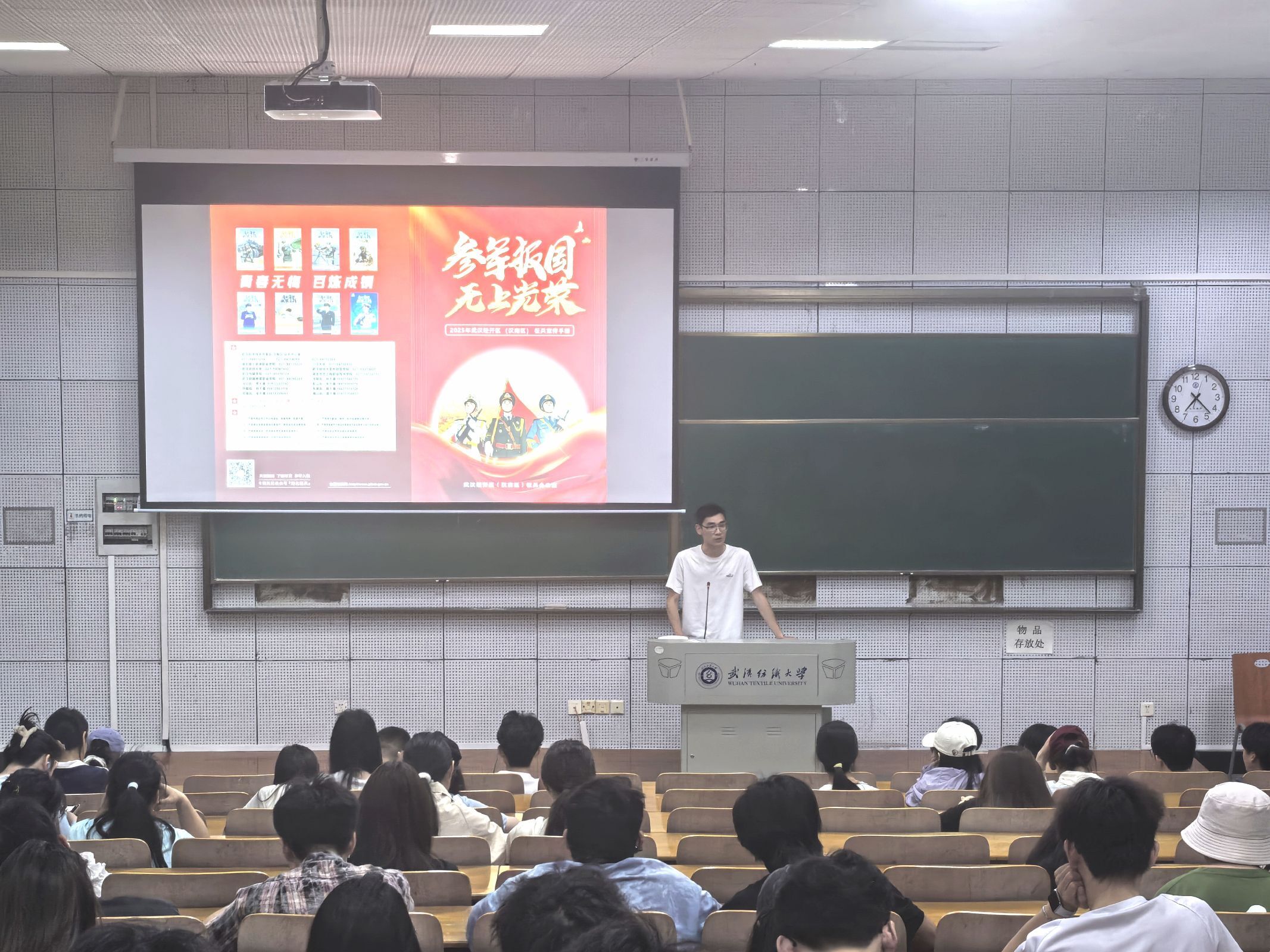 为扎实推进高校征兵宣传动员工作,大力吸引高素质人才投身国防建设,进一步激发大学生参军入伍热情,5月11日晚,2026世界杯官网于崇德楼T302报告厅召开2025年秋季征兵宣讲会暨退伍士兵朋辈交流会。化工学院应化12301班卢楚骏作为优秀退役大学生士兵代表,受邀进行征兵宣讲与经验分享,学院全体本科男生参加了此次活动。