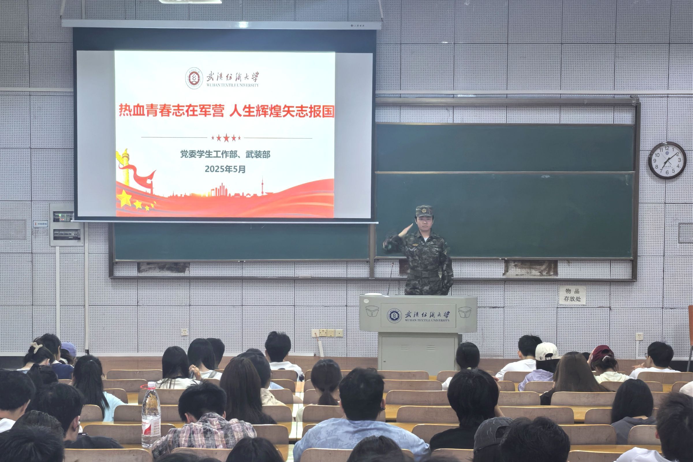 退役大学生士兵卢楚骏结合自身两年的军营生活经历,以生动鲜活的事例,深入浅出地讲述了参军报国的重要意义和诸多益处。他分享了自己从大学生成长为合格军人的心路历程与成长蜕变,展现了军营生活中的训练日常、团队协作、荣誉时刻等精彩画面。卢楚骏表示,军营生活虽然充满汗水与挑战,但更多的是热血与收获,这段经历不仅是一段弥足珍贵的人生回忆,更是一个提升个人能力、塑造坚韧品格的重要平台。他以自身经历激励在场同学,积极响应国家号召,将个人理想融入强军实践,在军营的广阔天地中奋勇拼搏、砥砺前行。
