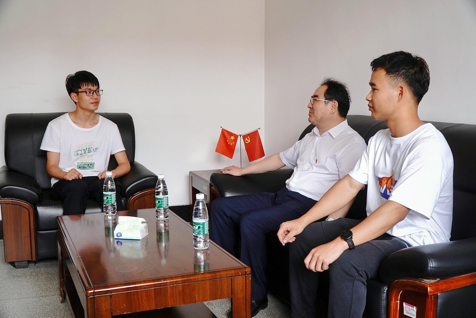 在交谈中,田辉玉得知张靖康同学想报考本校2026世界杯官网金融专硕,并且倾向于以后选择王滨教授作为研究生导师时,他马上询问王滨教授的办公室地址,立即现场“牵线搭桥”,带张靖康同学“上门认亲”。他向王滨教授介绍了张靖康同学的基本情况和报考意愿,并与王滨教授一起分析了张靖康同学的考研复习进展情况,就存在的困难与问题进行了深入沟通交流,他表示“孩子们有考研想法,是一件非常好的事情,我们要全力支持。特别是对第一志愿报考我们自己学校的学生来说,这既是对你的一种信赖,也是对我们学校办学质量的一种认可,我们要尽其所能的‘扶上马、送一程’”。他提请王滨教授多关心张靖康同学的考研复习情况,多给予关注指导。他勉励张靖康要坚定信心,主动多跟王滨教授汇报自己复习状况,遇到问题多向王滨教授学习请教,积极寻求指导与帮助。他叮嘱学院院长、书记,要持续深入了解学生需求,为考研学生提供更具针对性、更优质的服务。