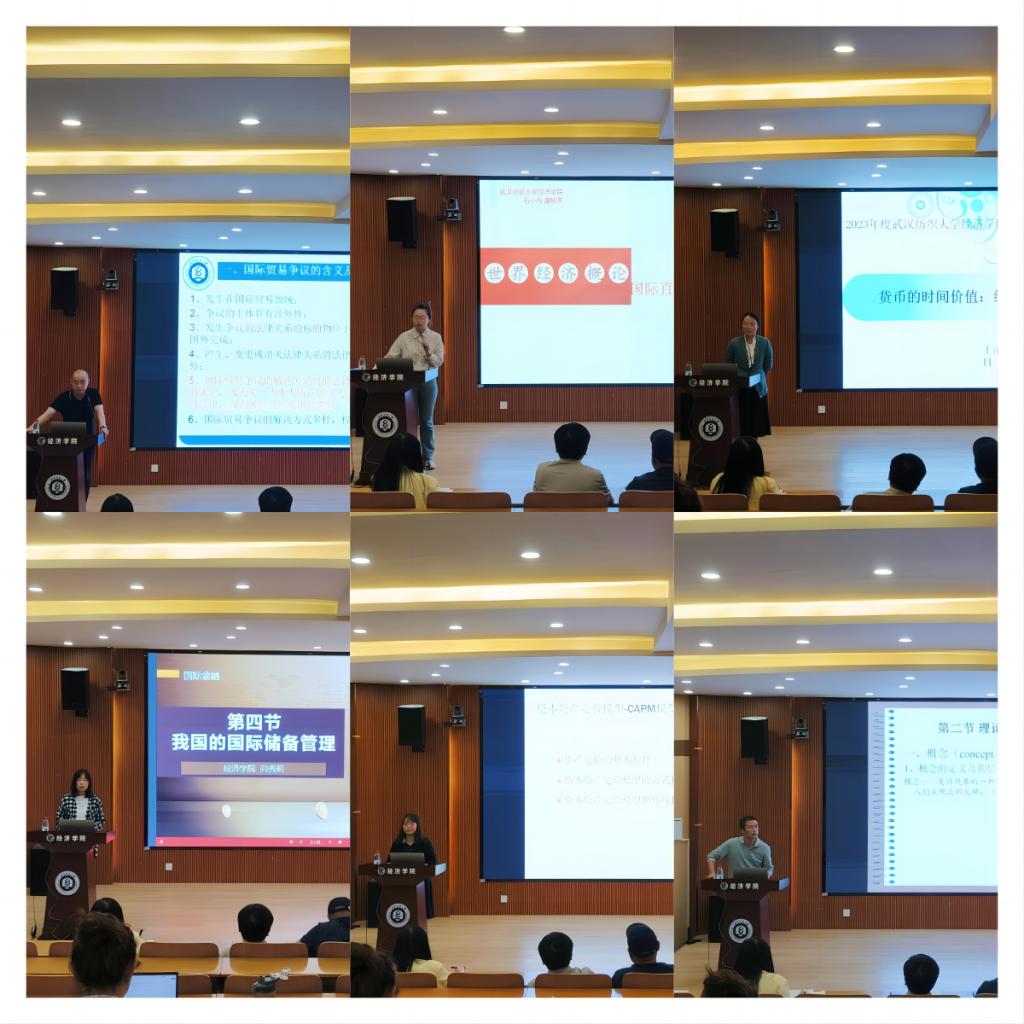 比赛中,6位老师利用寓言故事、实际案例、新闻片段等多种方式引入课程,积极运用媒体设备,依托PPT深入浅出,将枯燥的公式和理论转化为通俗易懂的内容。参赛教师结合时事热点,现场利用本章节所授知识对事件进行分析,并与台下观众进行互动,现场氛围紧张而充满活力。一位参赛教师表示,“我认真聆听了其他老师的授课,学到了许多宝贵的教学经验,也发现了自己在课堂教学中的不足。”赛后,学院分工会主席朱云峰与院长段丁强为参赛教师颁发奖品并合影留念。