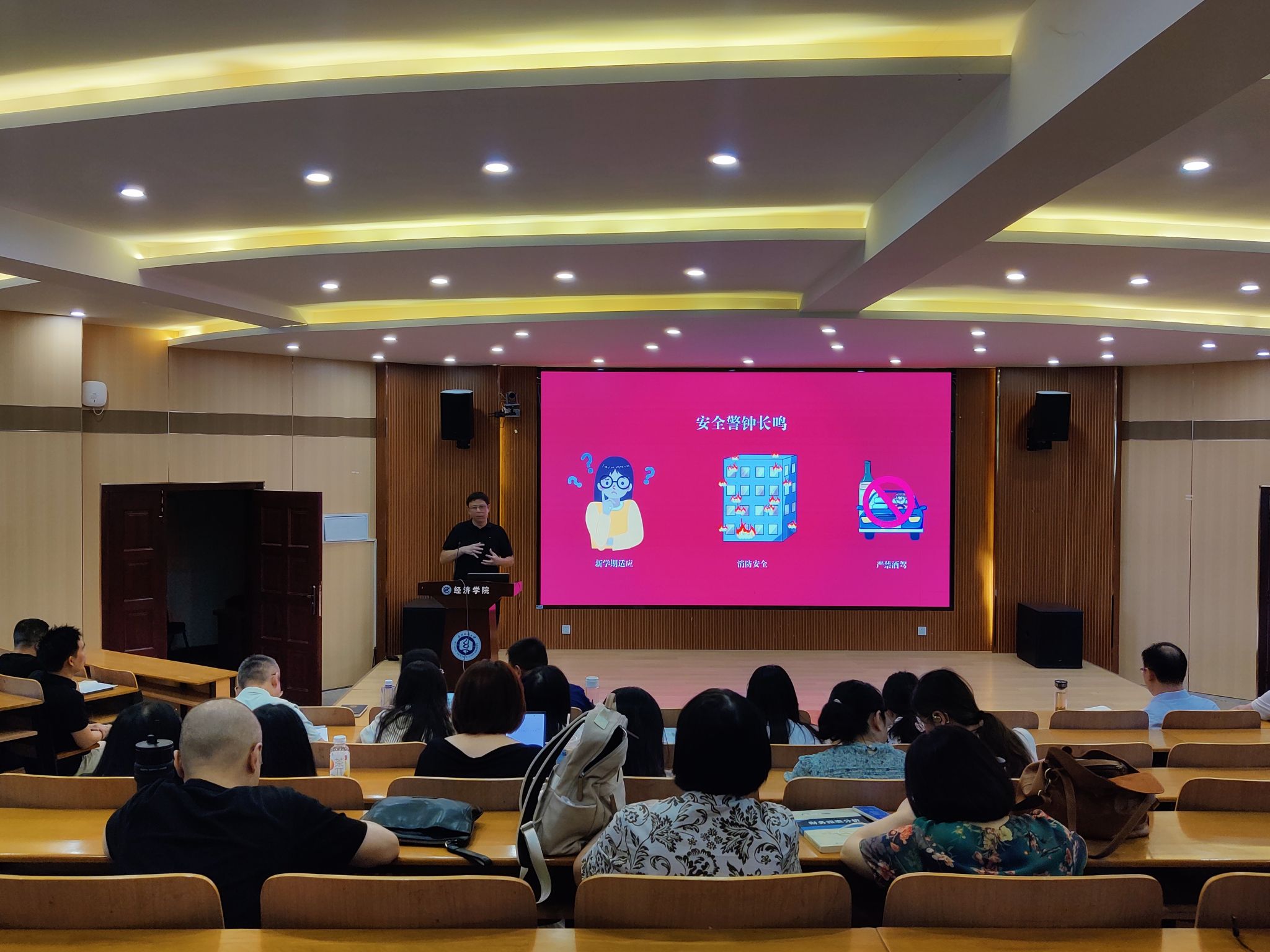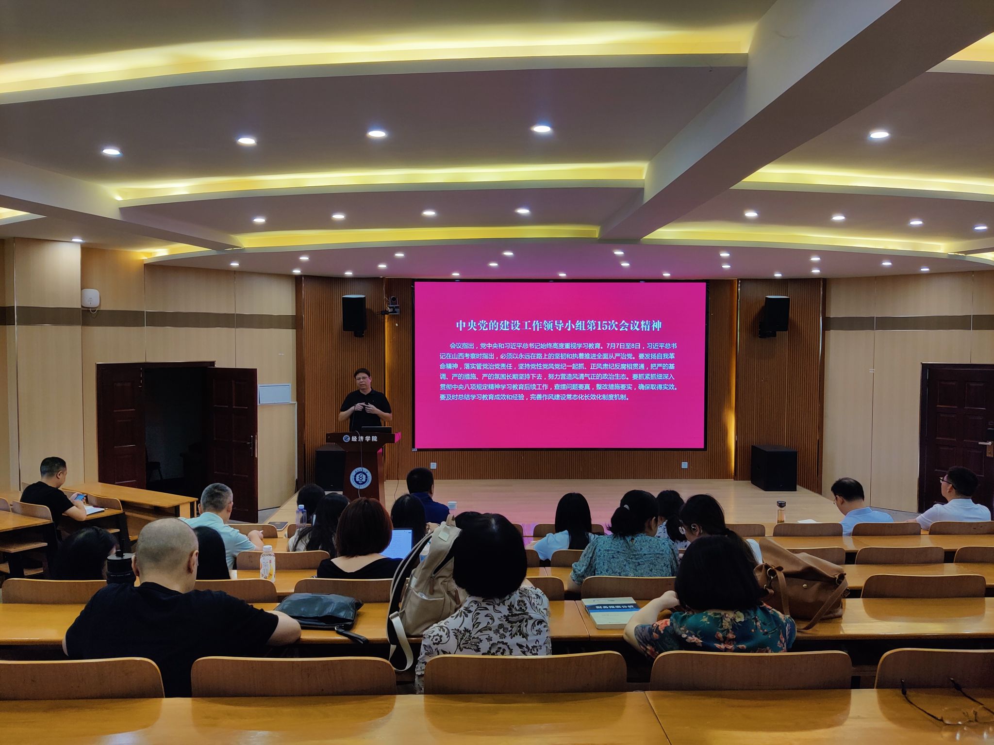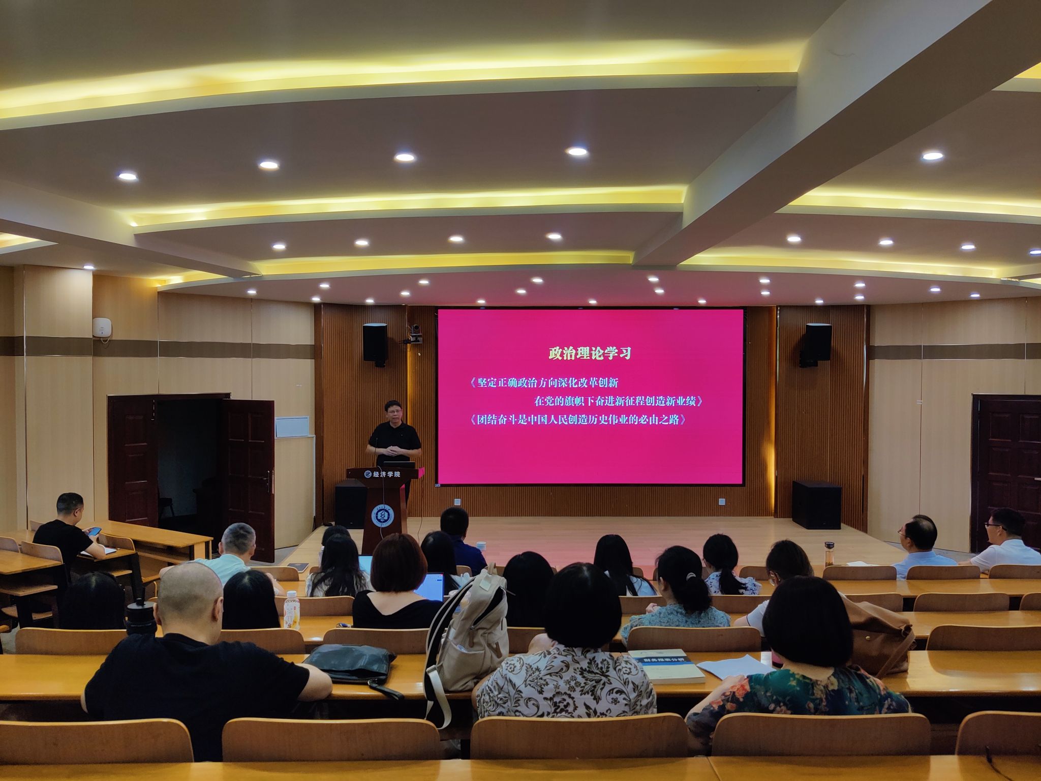 刘园美回顾了暑期工作亮点,从学科建设、师资队伍建设等维度梳理成果。科研与教学领域捷报频传,学院成功立项3项国家自科、社科基金项目,1门课程入选国家级一流本科课程,3项案例获评全国MF(金融硕士)教学案例,为学科发展注入强劲动力。师资队伍建设稳步推进,2名教师光荣退休、2名教师岗位变动,同时迎来2名新入职教师,为学院发展补充新鲜血液,进一步优化师资结构。