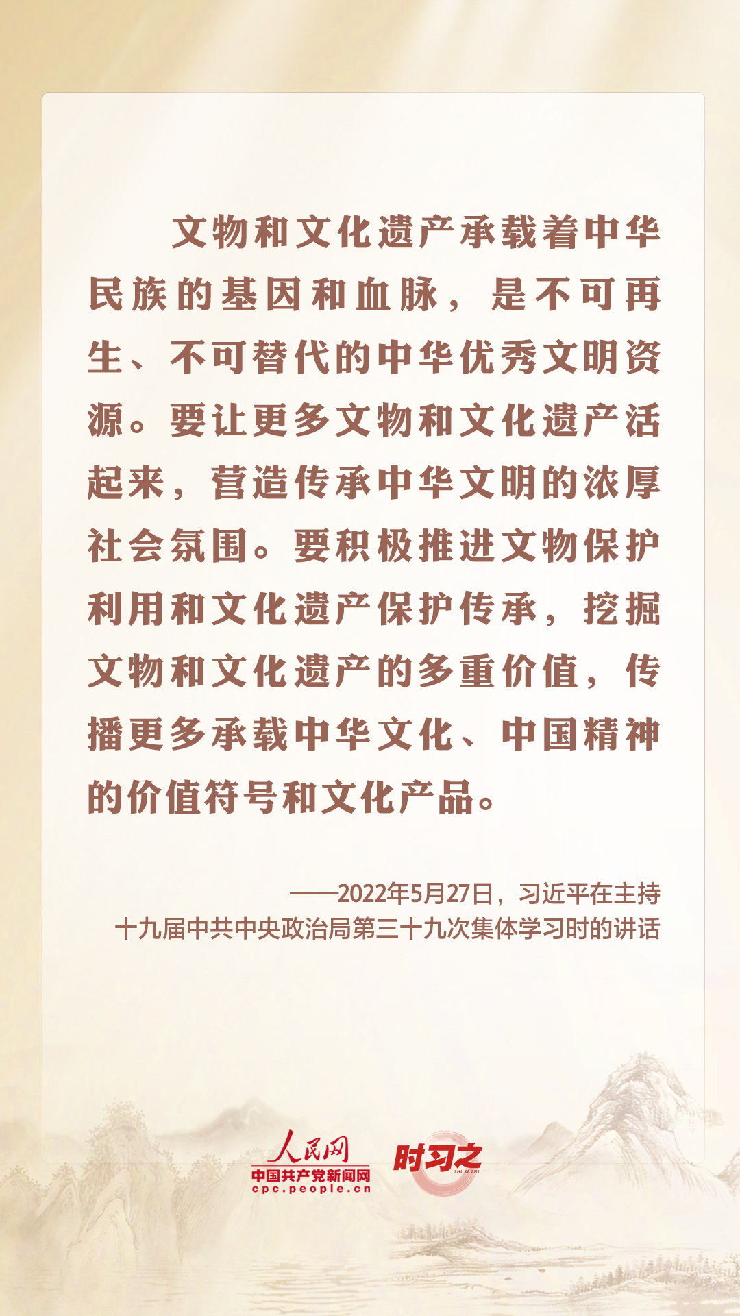 习近平总书记在主持中共中央政治局第三十九次集体学习时强调,“文物和文化遗产承载着中华民族的基因和血脉,是不可再生、不可替代的中华优秀文明资源。”不忘过去才能开辟未来,善于继承才能更好创新。习近平曾在多个不同场合强调要认真汲取中华优秀传统文化的思想精华和道德精髓,以时代精神激活中华优秀传统文化的生命力。