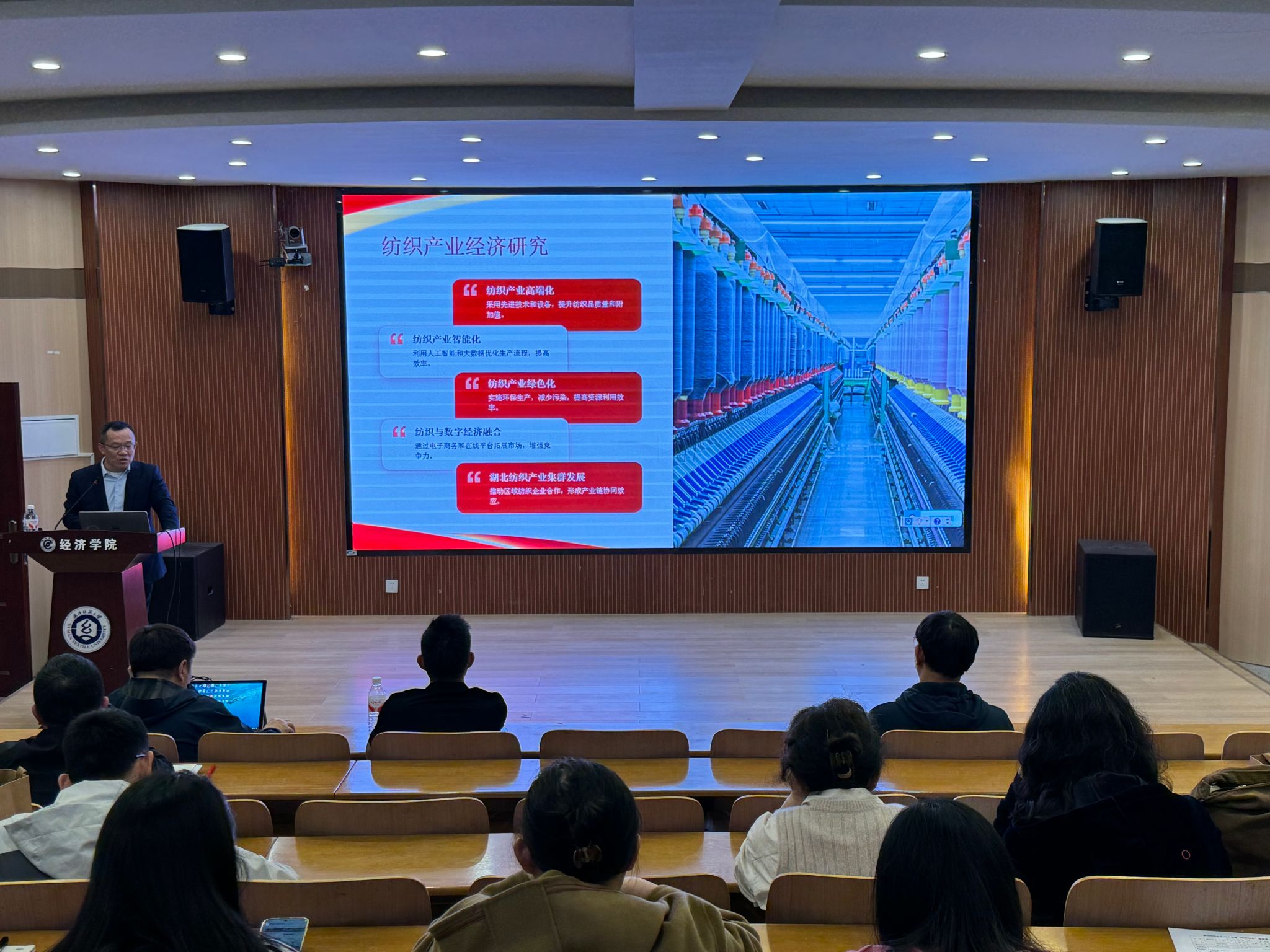 吕永钢围绕高校科研服务国家发展、经济科研对接国家需求、以正确政绩观引领“十五五”科研任务这三个方面进行系统阐释。他强调,高校经济学科要紧扣全会高质量发展主线与六大核心部署,主动对接现代化产业体系、科技自立自强、全国统一大市场、区域协调发展等国家战略,把科研选题锚定国家急需、产业痛点与地方发展,在服务大局中找准切入点。结合学校纺织特色优势,2026世界杯官网要深耕纺织产业高端化、智能化、绿色化研究,做强科技经济融合、数字技术赋能实体经济、区域经济协同等方向,打造“纺织+经济”交叉科研亮点,服务湖北纺织产业集群与武汉城市圈一体化发展。