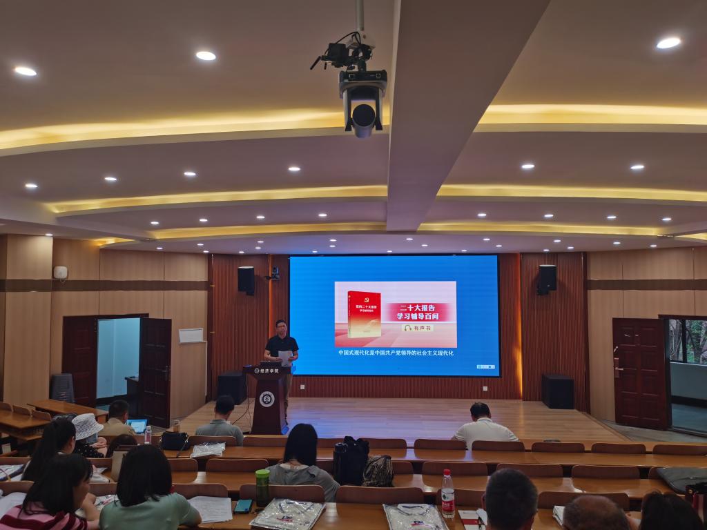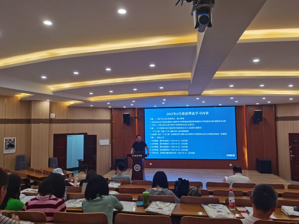 6月15日下午,学院在崇德楼T301召开教职工大会,学习“中国式现代化是中国共产党领导的社会主义现代化”专题,学院班子成员、全体教职工参加会议。会议由学院党委书记刘园美主持。